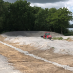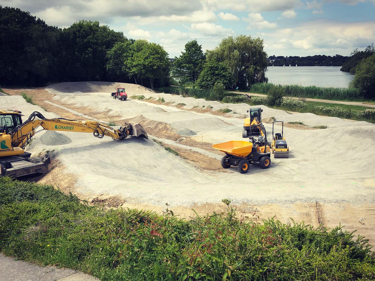 Après une première intervention fin 2018, DIG Tracks est repassé sur la piste BMX de Saint-Nazaire pour une deuxième phase de travaux. Le travail a été réalisé en collaboration avec l'entreprise Charier TP qui s'est occupé du drainage entre les lignes et de la pose de l'enrobé dans les virages. Notre mission concernait la préparation de ces virages : reprendre les courbes, pose du concassé 0/20 et compactage. Le club a profité de notre présence pour refaire également la première bosse... D'une pierre deux coups !